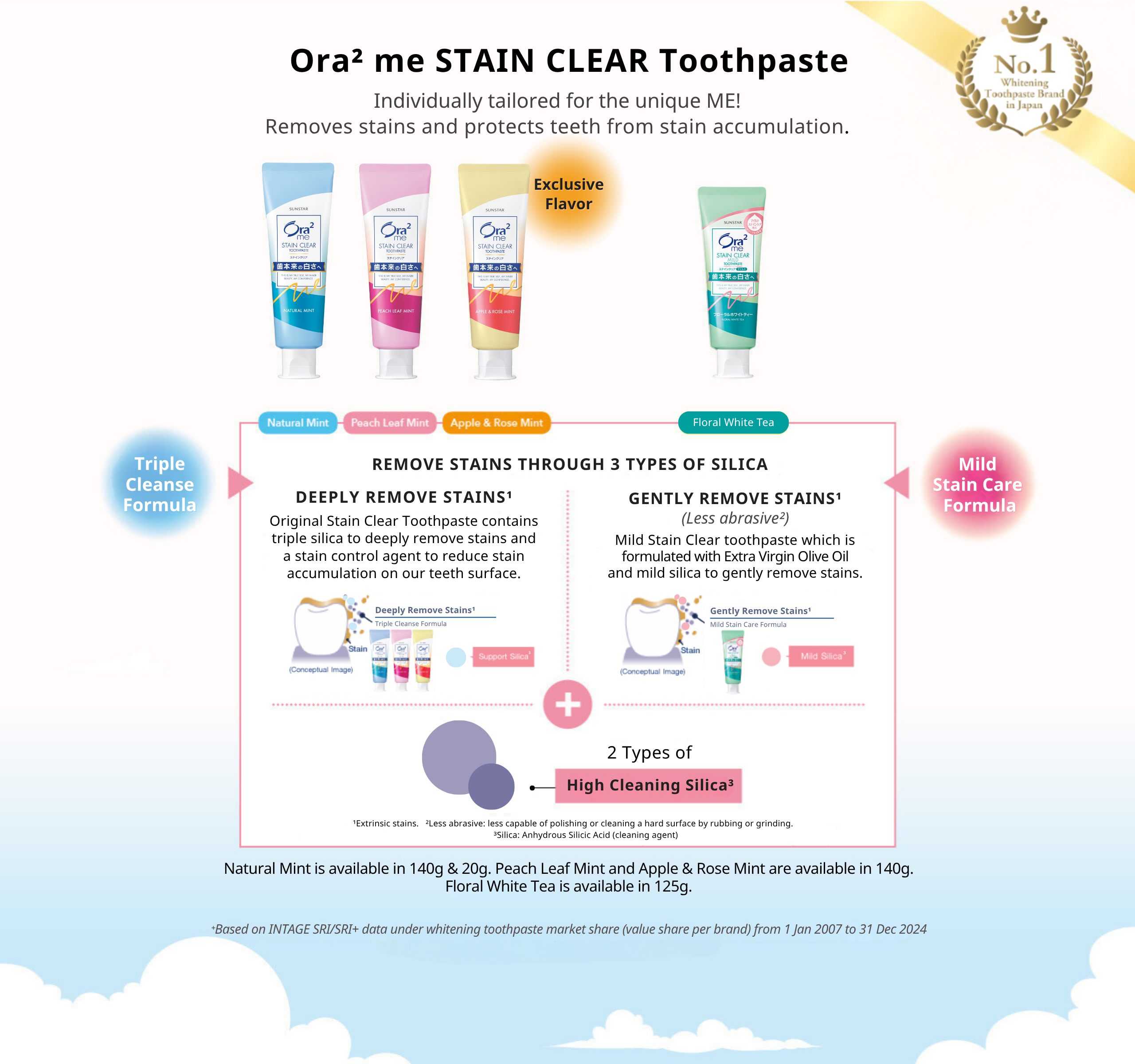 Bring out my teeth's natural whiteness with 2 types of toothpaste.(Ora² me STAIN CLEAR Toothpaste)