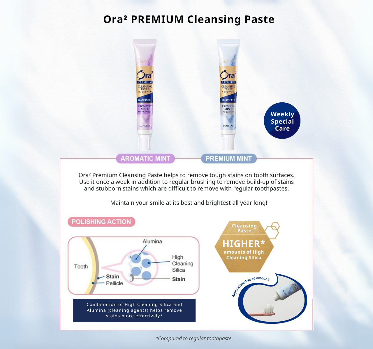 Deep cleansing with intensive whitening care.(Ora² PREMIUM Cleansing Paste - Toothpaste)