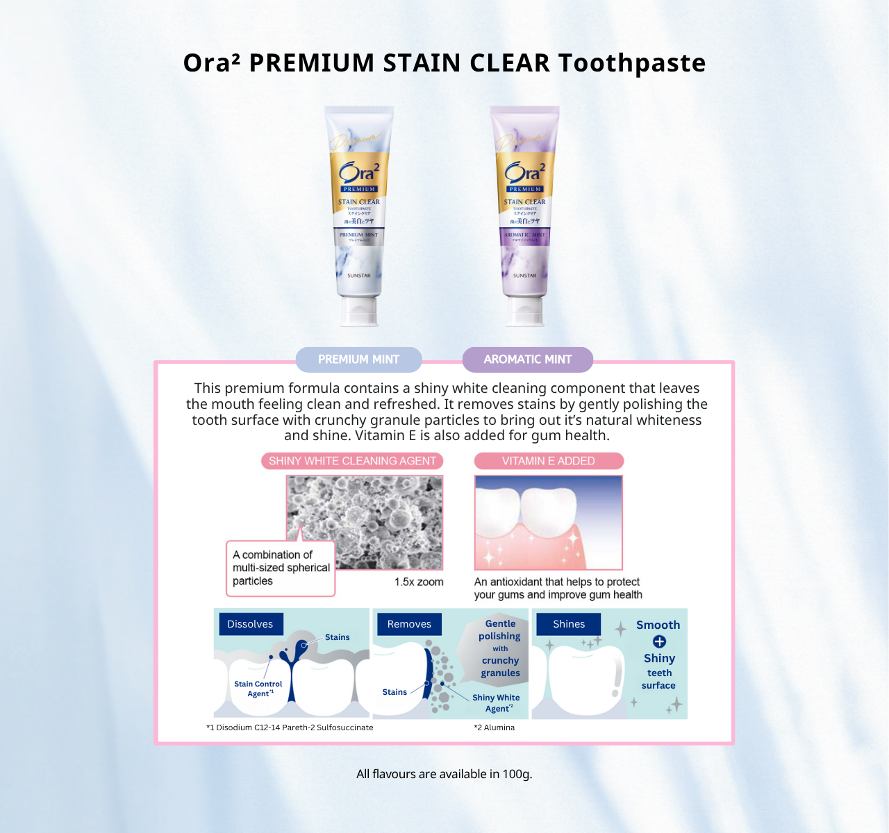 Advanced formula to restore my teeth’s natural whiteness.(Ora² PREMIUM STAIN CLEAR Toothpaste)