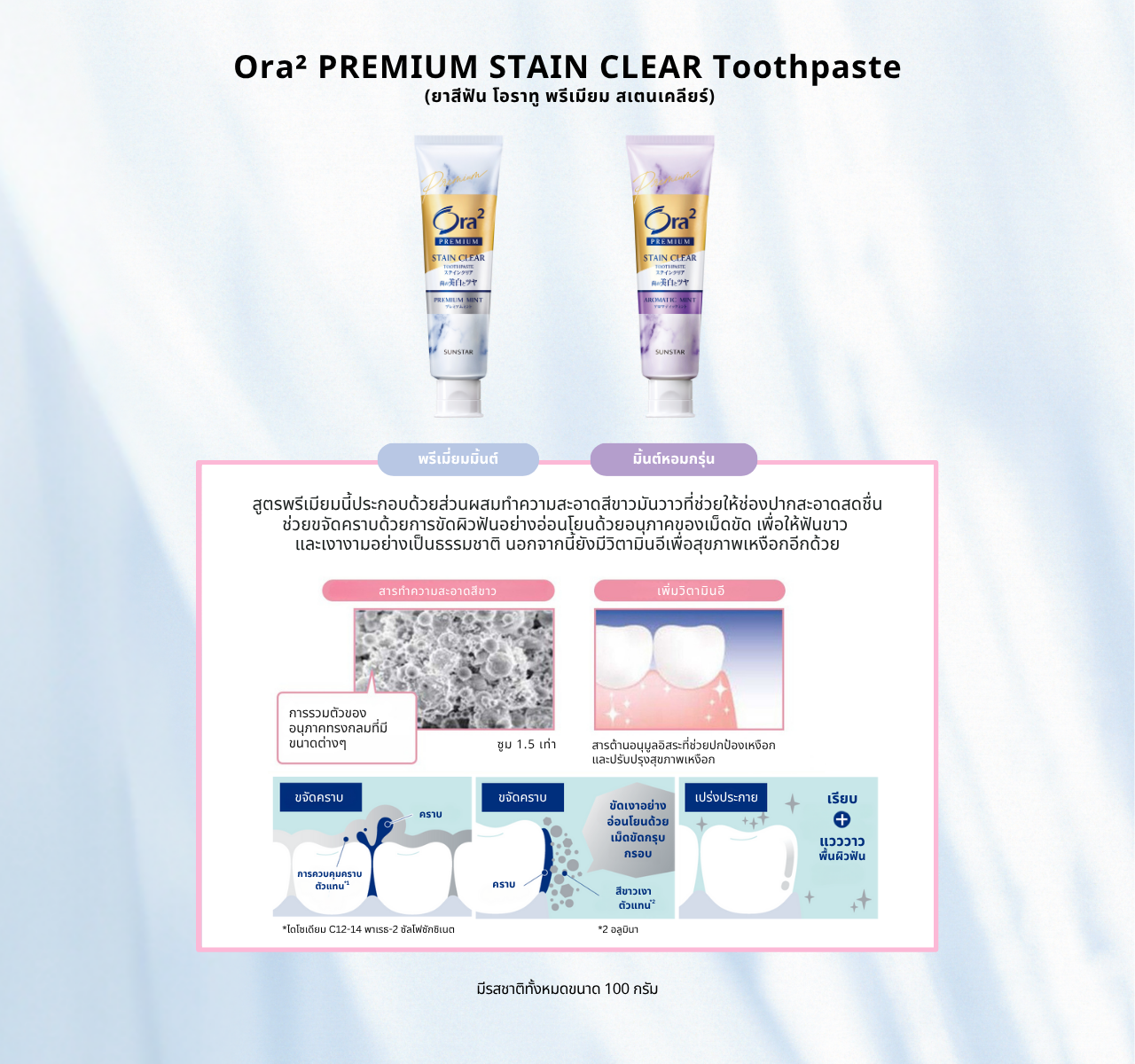 สูตรแอดวานซ์ เพื่อคืนความขาวของฟัน อย่างเป็นธรรมชาติ(Ora² PREMIUM STAIN CLEAR Toothpaste)