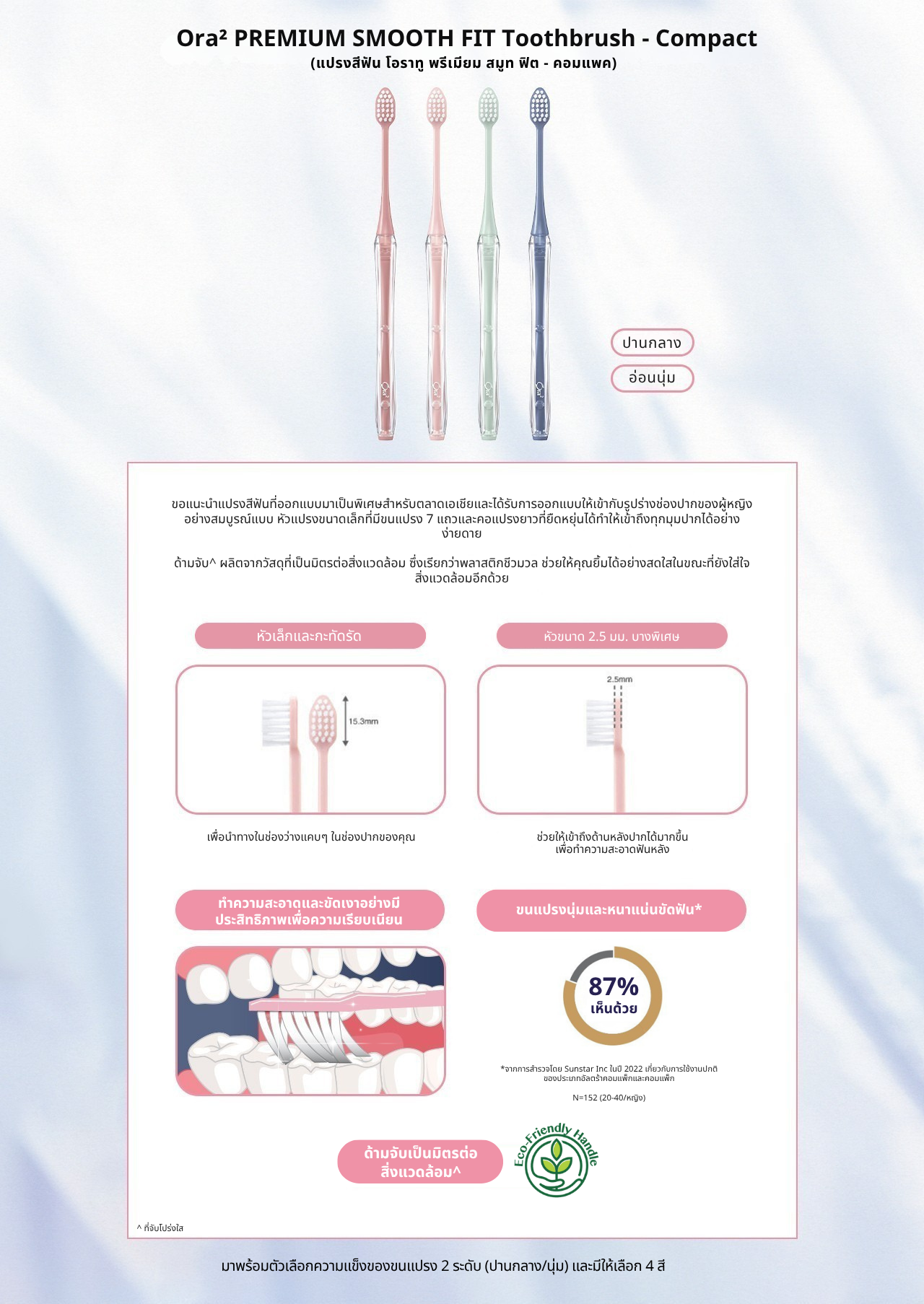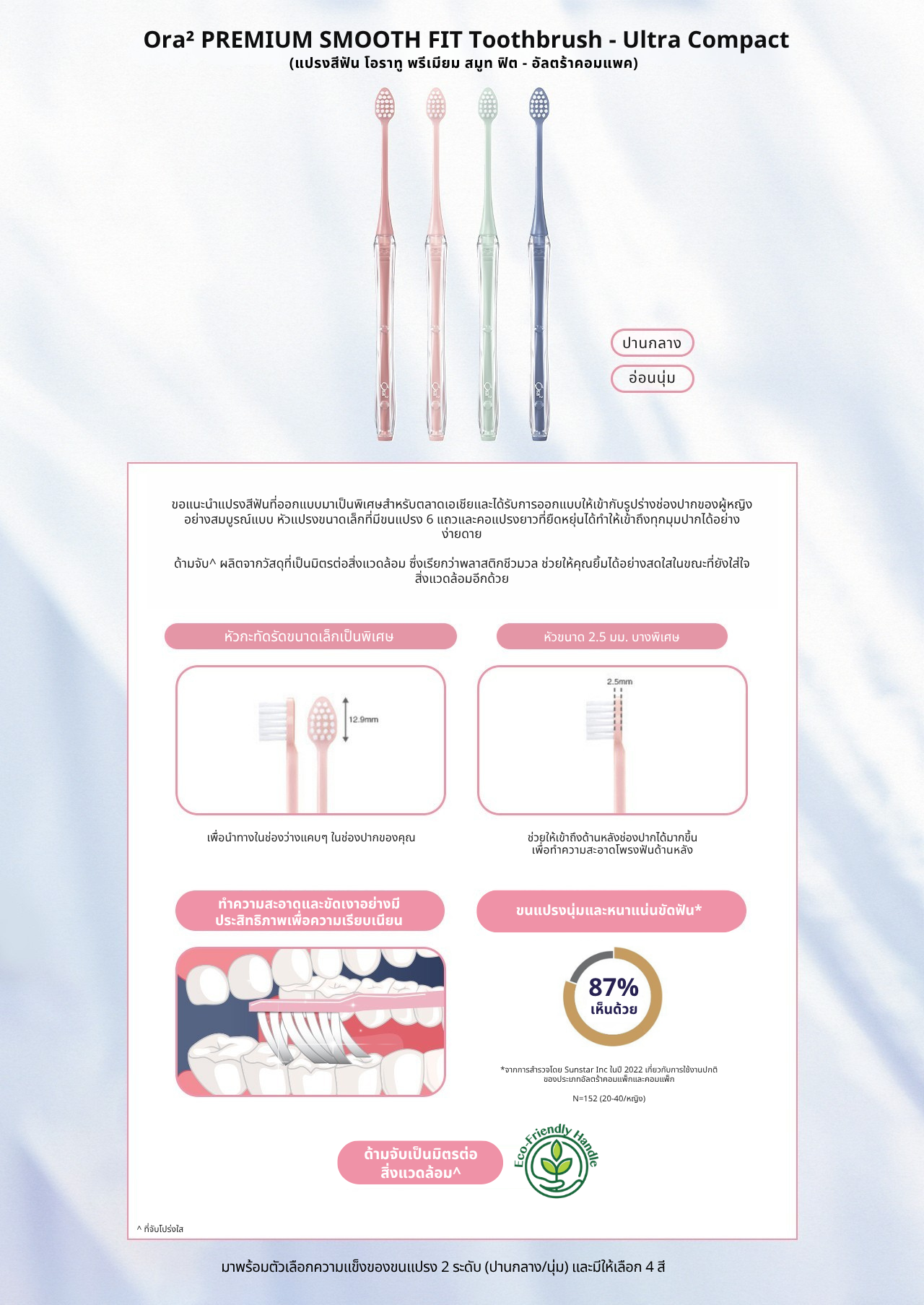 ดีไซด์บางมาพร้อมกับสีพาสเทลที่เหมาะกับสไตล์คุณ(Ora² PREMIUM SMOOTH FIT Toothbrush)